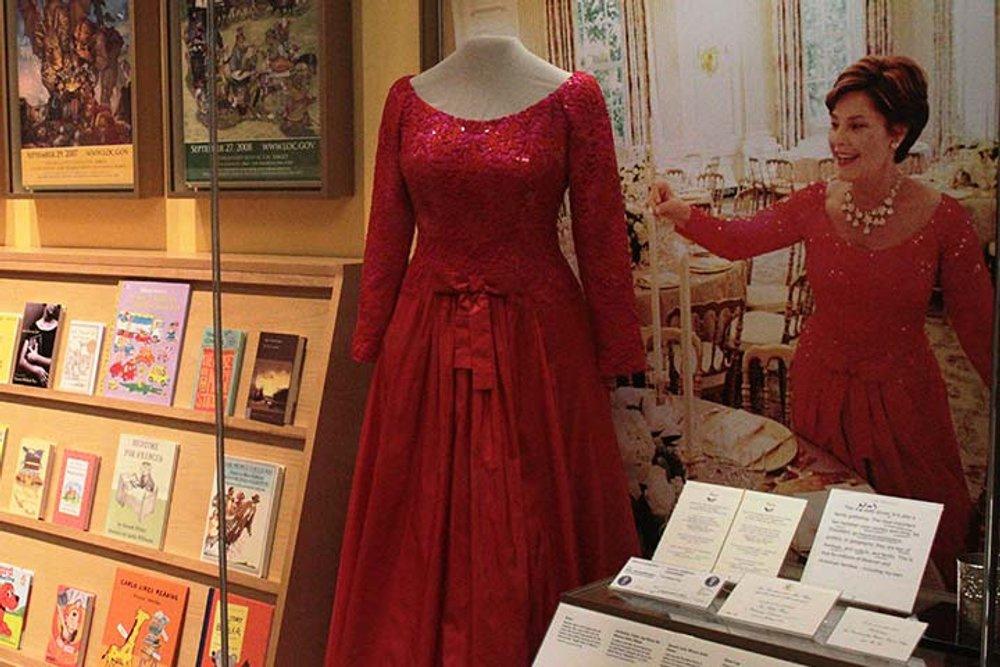 正在展出第一夫人劳拉·布什穿的连衣裙。